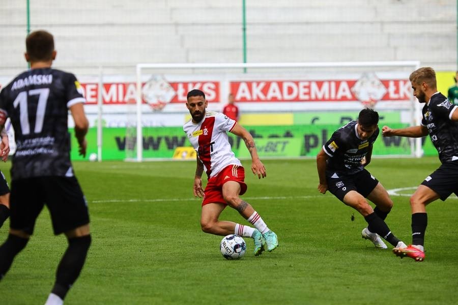 Wydawało się zatem, że ŁKS będzie schodził na przerwę ze skromną jednobramkową zaliczką. Tak się jednak nie stało. Błędy w defensywie Ełkaesiaków wykorzystał Mathieu Scalet, który wykończył sprawnie przeprowadzoną kontrę w samej końcówce pierwszej części gry.