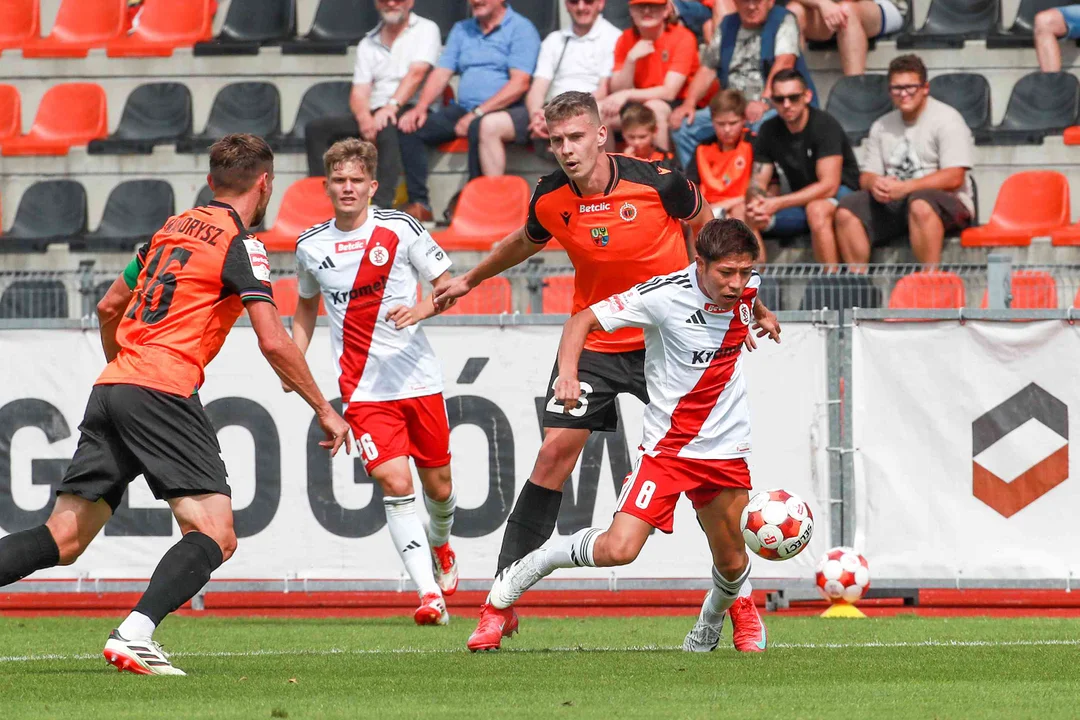 Zespół trenera Szymona Grabowskiego szybko odpowiedział po akcji rezerwowych (na prawym skrzydle urwał się Mateusz Wysokiński, a jego dokładne podanie spuentował celnym strzałem Mateusz Lewandowski). Radość łodzian nie trwała jednak długo, bo już kilkadziesiąt sekund później Kelechukwu Ibe-Torti wykorzystał moment zawahania ełkaesiaków i ponownie wyprowadził Chrobrego na prowadzenie.