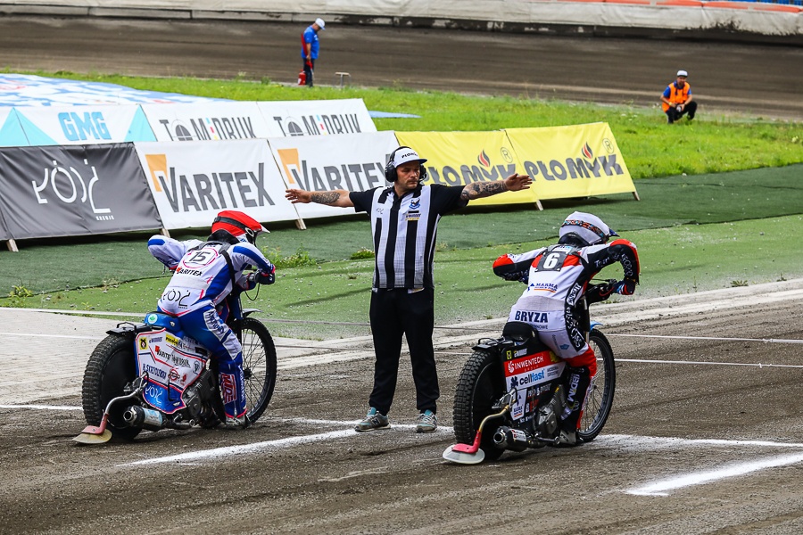 Goście z Krosna po trzynastym biegu przegrywali już dwudziestoma punktami. Orzeł prowadził 49:29 i jasnym stało się, że zakończy ten pojedynek zwycięsko. Celfast Wilki Krosno w ostatnich dwóch wyścigach zmniejszyli rozmiary porażki, bowiem udało im się zanotować na sam koniec zawodów dwa podwójne zwycięstwa za sprawą Musielaka, Milika i Lebiediewa.