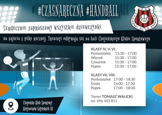 W poniedziałek, wtorek, czwartek i piątek, zawsze w godzinach 15:30 – 17:00, trenować będą dziewczynki z klas IV, V i VI. Natomiast w poniedziałek (17:00 – 18:30), środę (16:00 – 17:30) i piątek (17:00 – 18:30) przeprowadzane będą zajęcia dla dziewczynek z klas VII i VIII.