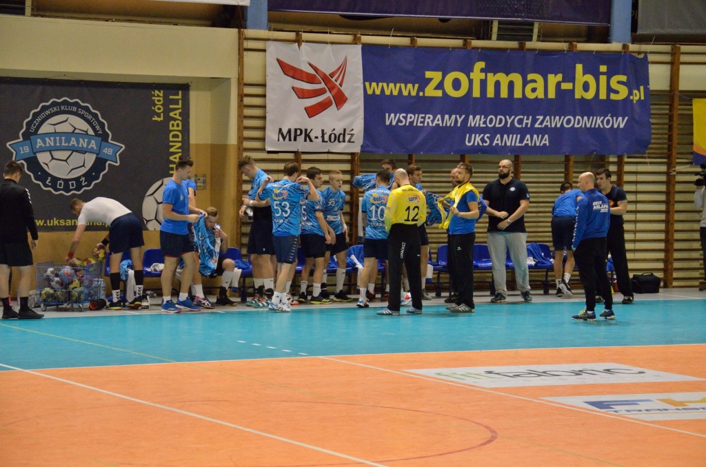 Już od pierwszych minut sobotnie spotkanie było bardzo zacięte. Gospodarze w krótkim czasie zdobyli przewagę trzech bramek, której nie udało im się utrzymać pod naporem ataków łodzian. Od stanu 6:6 pierwsza połowa była już wyrównanym bojem. Obie ekipy punktowały bardzo równomiernie, czasami odskakując przeciwnikom na dwa punkty. W nerwowej końcówce pierwszej odsłony spotkania więcej zimnej krwi zachowali piłkarze ręczni Anilany, którzy zdołali rzucić jedną bramkę więcej, dzięki czemu schodzili na przerwę z prowadzeniem.