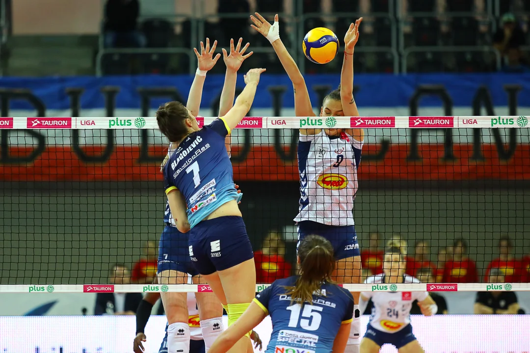 Początek pierwszego seta należał do rzeszowianek, które po ataku Anny Stencel prowadziły 6:2. Z każdą upływającą minutą przewagę wicemistrzyń kraju zwiększała się coraz bardziej. Po bardzo długiej wymianie i punkcie zdobytym przez Bajemę podopieczne Stephane’a Antigi prowdziły 15:5, a chwilę później nawet 17:5. Tę bardzo jednostronną partię zakończyła nowa siatkarka w rzeszowskiej ekipie, Malwina Smarzek.