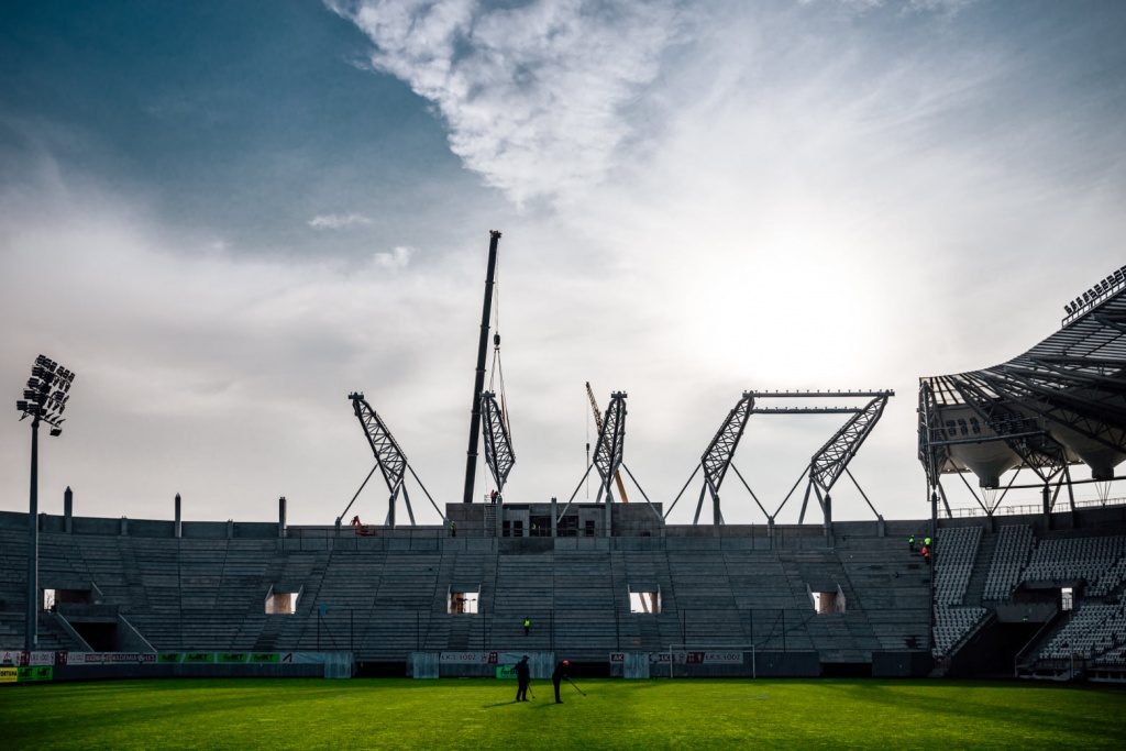 W ostatnich dniach ruszyły prace związane z budową dachu stadionu ŁKS oraz montowaniem jego elementów konstrukcyjnych.