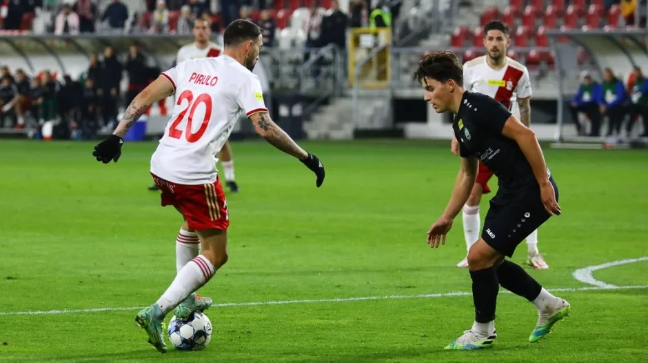 0:1 61’ – Świetne zagranie na prawe skrzydło Trąbki, do piłki dopada Wszołek, który dośrodkowuje do Pirulo, a ten główką z czterech metrów pokonuje Kostrzewskiego.
