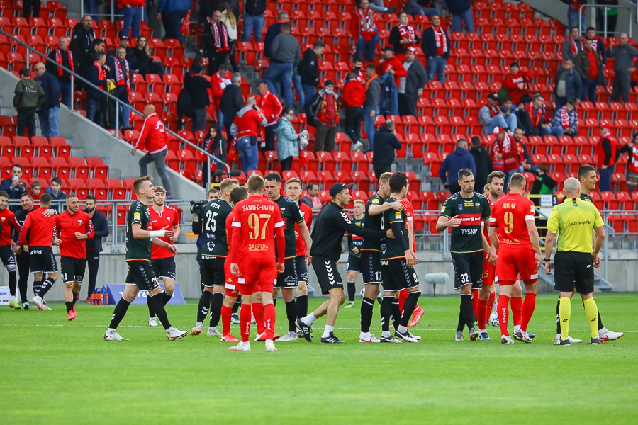 Zamieszanie po ostatnim gwizdku w meczu Widzew Łódź - GKS Tychy (Fot. Michał Pietrzak/TuŁódź.pl) |