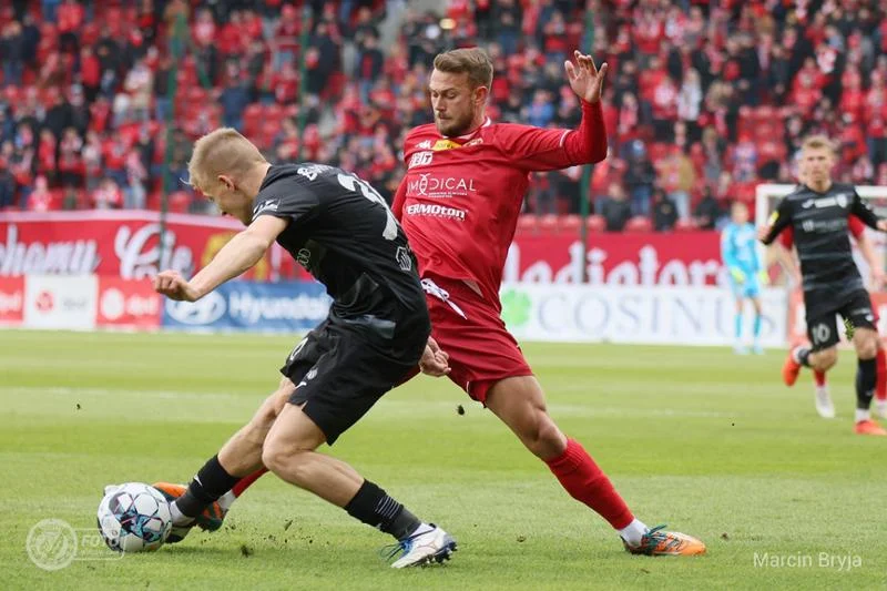 28’ - Martin Kreuzriegler popisał się świetnym długim podaniem na wolne pole do Terpiłowskiego. Ten przyjął sobie piłkę i szukał podaniem dobrze ustawionego Przemysława Kity, który miał przed sobą tylko bramkarza, ale Terpiłowski zagrywał niedokładnie.