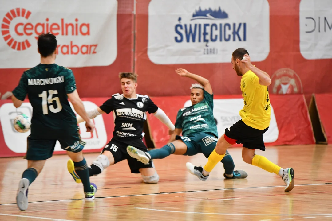 Na początku szlagieru w 3. kolejce Futsal Ekstraklasy przewagę optyczną mieli przyjezdni. Z czasem jednak mecz się wyrównał, czego potwierdzeniem był gol, którego w 6. minucie zdobył Viacheslav Kozhemiaka. Po 4 minutach Legia odpowiedziała trafieniem Adama Grzyba i w hali przy ul. Małachowskiego mieliśmy remis 1:1. Przed przerwą padly jeszcze dwie bramki i obie były autorstwa graczy z Łodzi. Najpierw ponowne prowadzenie Widzewowi dał Daniel Krawczyk, a poprawił João Bernardes.