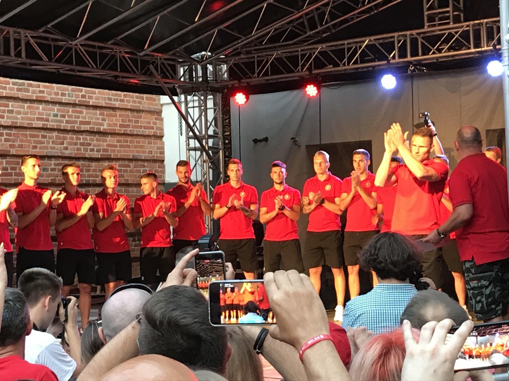 Piłkarze zostali przedstawiani formacjami, zaczynając od bramkarzy, później obrońcy, pomocnicy i napastnicy. Każdy z nich miał okazję przywitać fanów i skierować do nich kilka słów od siebie. Jako ostatni z zawodników pojawił się Marcin Robak i to on dostał od kibiców i kolegów z drużyny największe owacje. Później przyszedł czas także na sztab medyczny i szkoleniowy, z trenerem Marcinem Kaczmarkiem na czele.