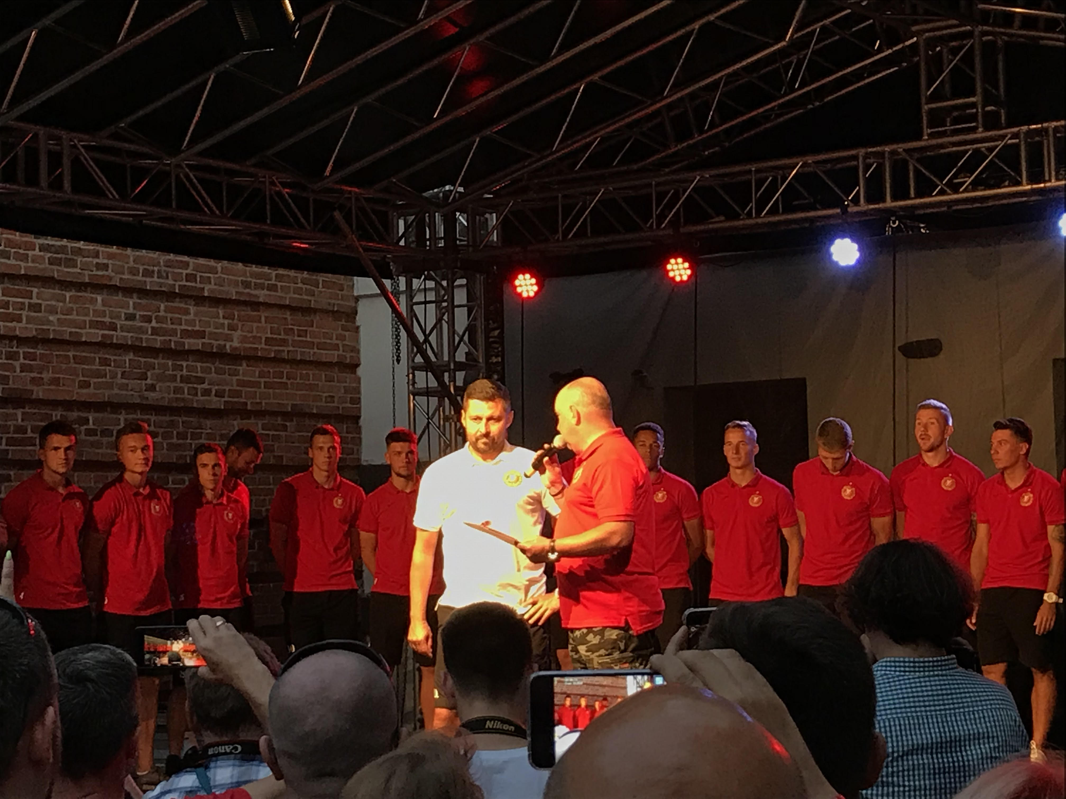 Zanim na scenie pojawili się zawodnicy i sztab, odbyła się jeszcze prezentacja nowych strojów Widzewa na sezon 2019/2020, o których więcej dowiecie się TUTAJ. Później prowadzący imprezę Marcin Tarociński, zaprosił na scenę tych, na których najbardziej czekano.