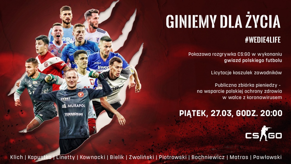 Akcja #WEDIE4LIFE jest w swoich założeniach bardzo prosta. Znani polscy zawodnicy rozegrają pokazowy turniej w CS: GO, a towarzyszyć temu będzie licytacja ich koszulek meczowych z klubów, w których aktualnie występują. Kolejną zachętą do wzięcia udziału w wydarzeniu powinno być to, że zmagania piłkarzy skomentuje jeden z najbardziej znanych polskich komentatorów e-sportowych, Piotr „Izak” Skowyrski.