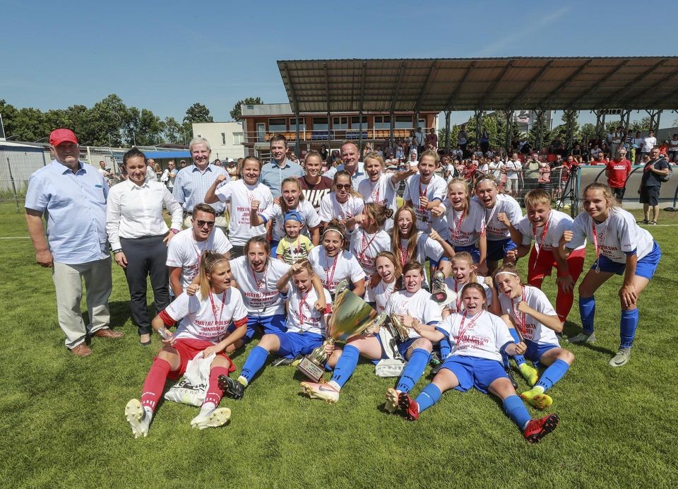 Medale najlepszej drużynie w kraju wręczała reprezentantka Polski Ewa Pajor, której towarzyszył m.in. dyrektor Wydziału Sportu UMŁ Marek Kondraciuk.