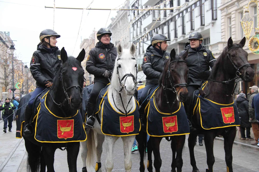 Szarża wyruszyła o godz. 12 z pasażu Schillera na Piotrkowskiej. Pochód składał się z jeźdźców, powozów i kilkudziesięciu samochodów, w tym wozów strażackich i aut pokazowych. Na koniach jechali przedstawiciele łódzkiej straży miejskiej, policji oraz członkowie wojskowych grup rekonstrukcyjnych. Nie zabrakło też Ochotniczej Straży Pożarnej - Grupy Ratownictwa Specjalistycznego z psami.