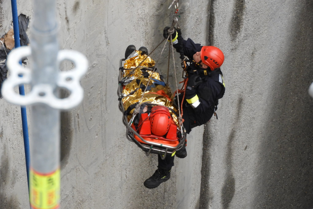 - W takiej sytuacji nie można wydostać osoby poszkodowanej na noszach typu „deska” klatką schodową, gdyż nie pozwalają na to jej wymiary. Jako grupa wysokościowa w Komendzie Miejskiej PSP w Łodzi, technikami alpinistycznymi, ćwiczyliśmy ewakuację osoby poszkodowanej na powierzchnię z otwartego szybu. W takiej sytuacji to jedyna droga by ewakuować poszkodowanego – mówił mł. bryg. Mariusz Kawnik, dowódca Jednostki Ratowniczo-Gaśniczej nr 10 w Łodzi oraz dowódca Specjalistycznej Grupy Ratownictwa Wysokościowego KM PSP w Łodzi.