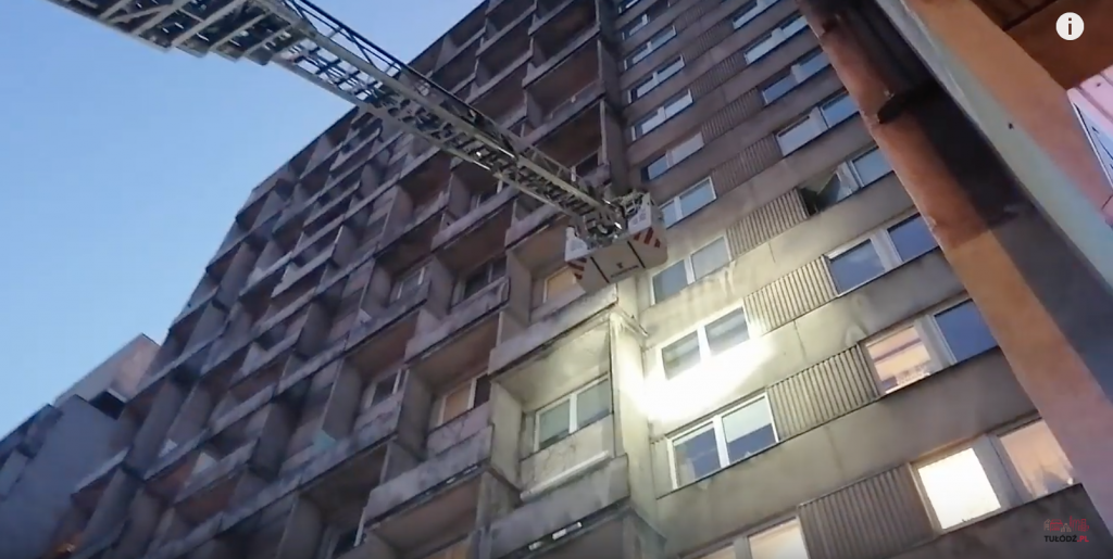 Jak widać na wideo otrzymanym od jednego z naszych czytelników, strażacy za pomocą specjalnego podnośnika dostali się do mieszkania na szóstym piętrze wieżowca stojącego przy ul. Piotrkowskiej 204.