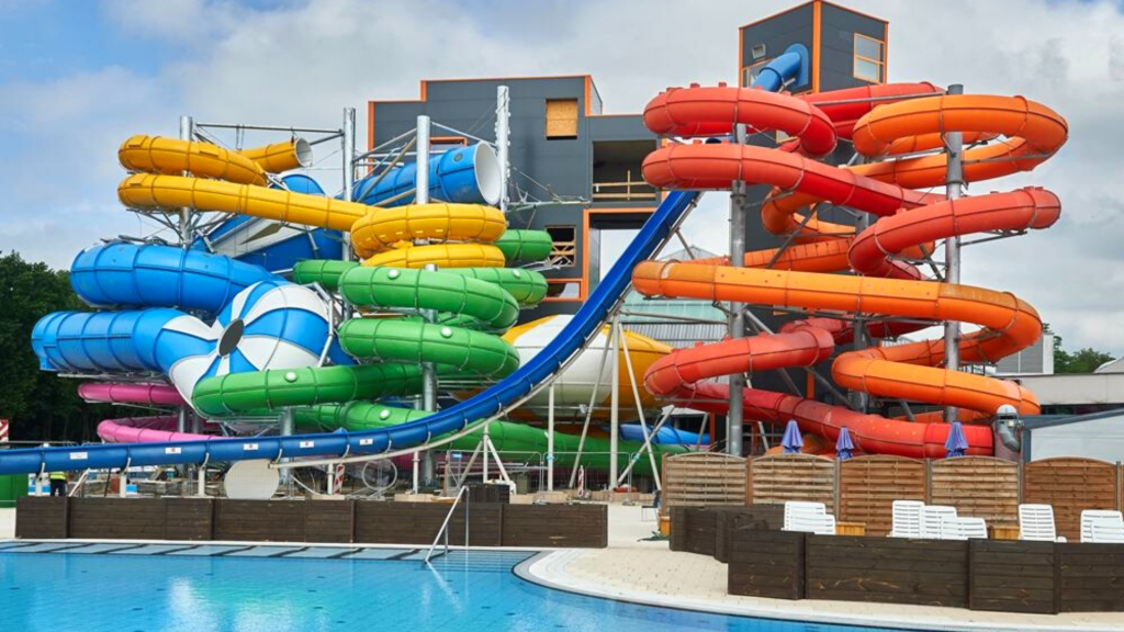 Trwa budowa nowej wieży zjeżdżalni z czterema imponującymi trasami zjazdu. Na przełomie czerwca i lipca będzie można skorzystać z trzech zjeżdżalni pontonowych oraz zjeżdżalni, której start odbywa się w kapsule z zapadnią w podłodze.