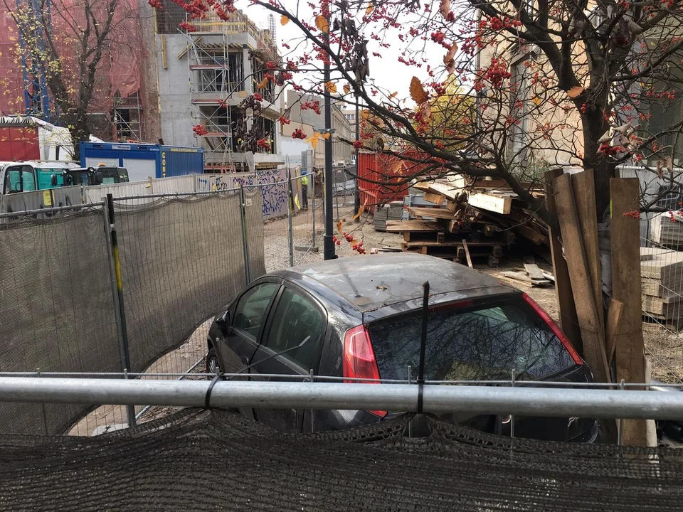 Jakiś czas temu napisała do nas nasza czytelniczka, zaniepokojona obecnością tajemniczego samochodu "przytulonego" do drzewa w Pasażu Schillera.Przytulas od dawna wędrował tam i z powrotem w ramach wielkiej przygody budowlanej - od skrzyżowania do drzewa, aż w końcu postanowił odpocząć na gałęziach