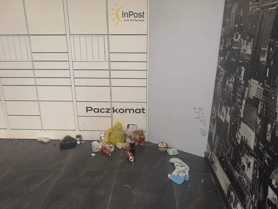 - Pół paczkomatu, czyli tego pomieszczenia było zasypane śmieciami. On [mężczyzna - przy. red.] leżał przy paczkomacie. Jakby przychodzili tam na noc, spali, nie śmiecili i rano wychodzili to ok. Ale to nie jest noclegownia. I przez nich paczki tam nie można zamowić - zauważa inna z mieszkanek.