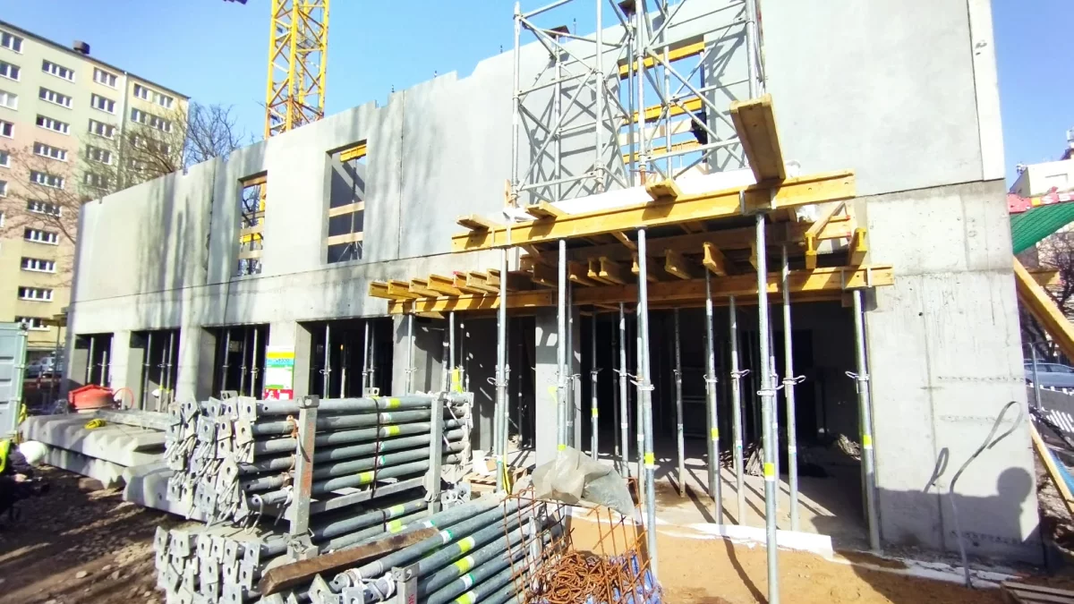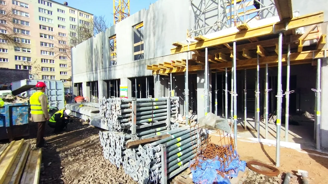 Od ostatniego poniedziałku (9 marca) trwa montowanie prefabrykatów. Do środy (11 marca) postawiono całe piętro. Za sześć tygodni budynek ma stać w stanie surowym.