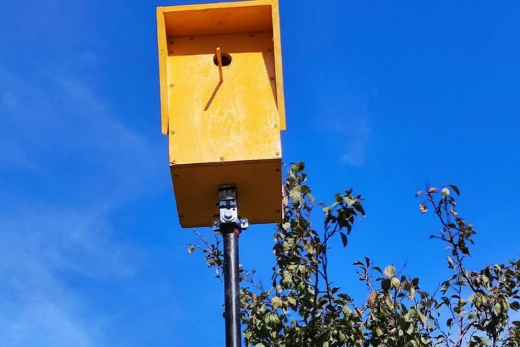Imitująca fotoradar budka dla ptaków pojawiła się przy jednej z prywatnych posesji. Z odległości żółta skrzyneczka do złudzenia przypomina radar do pomiaru prędkości.