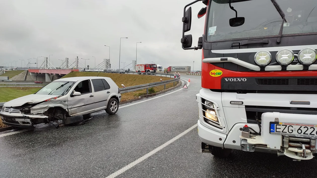 Do zdarzenia doszło dziś, 19 kwietnia, o godzinie 13.04. Na węźle Łódź-Północ samochód uderzył w bariery, całkowicie blokując jezdnie.