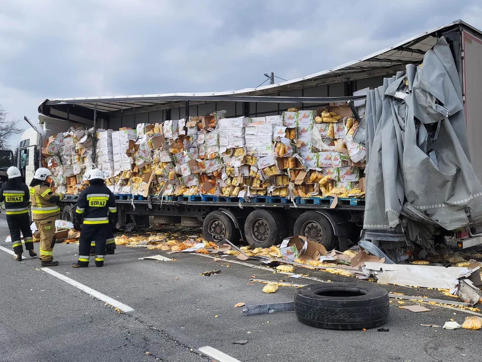 Towar wyleciał z ciężarówki. Na drodze płatki kukurydziane