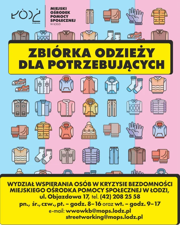 Najbardziej potrzebne są długie ciepłe kurtki, bluzy z kapturem lub z polaru, spodnie dresowe (najlepiej ocieplane), bielizna termiczna, czapki, rękawiczki, szaliki oraz grube skarpety. Przydadzą się też plecaki, termosy, karimaty, śpiwory i koce. Szczególne zapotrzebowanie dotyczy odzieży męskiej w rozmiarach M - XXL, ponieważ to mężczyźni stanowią większość wśród osób bezdomnych. Dla kobiet przyjmowane są ubrania w rozmiarach S - XL.