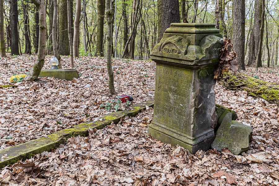 "Jeszcze w latach 80-tych cmentarz ogrodzony był ceglanym murem. Do dziś zachowało się na nim kilkanaście nagrobków; nieliczne z nich mają formę piaskowcowych płyt z czytelnymi inskrypcjami, po większości pozostały tylko kamienne obramowania. Najciekawszy z nich, ozdobiony gotyckim liternictwem pomnik z piaskowca oznacza miejsce spoczynku aż dziewięciorga dzieci, zmarłych w wieku od kilku miesięcy do około trzech lat. Wszystkie noszą nazwisko Lange, a daty ich śmierci pochodzą z lat 80-tych i 90-tych XIX wieku. Ostatnich pochówków na cmentarzu dokonano w latach 50-tych XX wieku" - czytamy na stronie osadnicy.info.