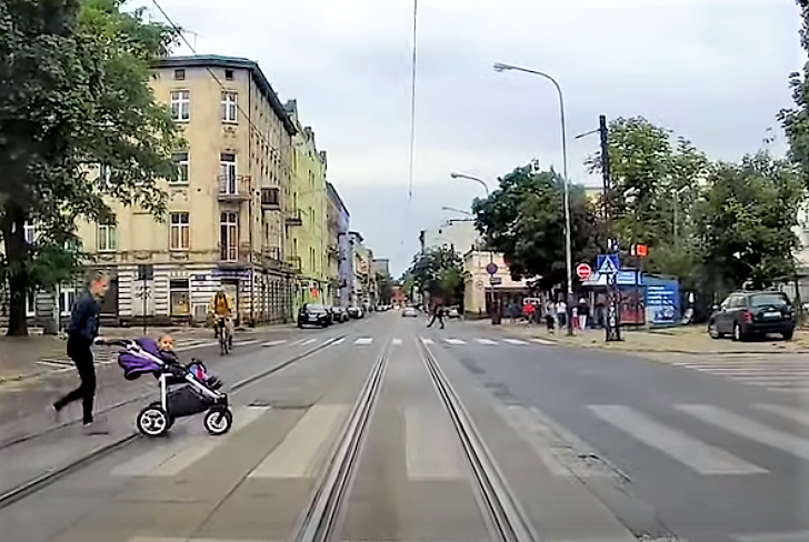 Ileż rezerwy i radości w zwyczajną, łódzką rzeczywistość wprowadził malec, który jednym gestem rączki pozdrowił i podziękował kierowcy za umożliwienie jego opiekunce (mamie, siostrze?) przejazdu wózkiem przez przejście dla pieszych.