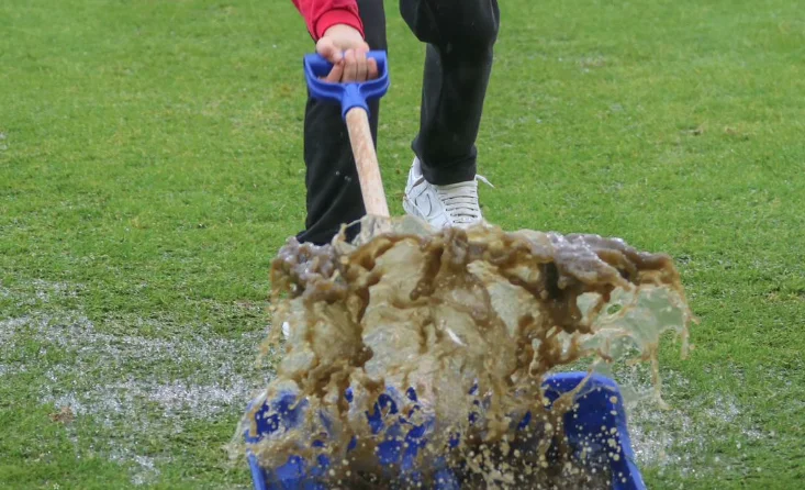 Z nagrania opublikowanego przez drużynę widzimy zalaną murawę, na której zaczęły tworzyć się spore kałuże. Dla kibiców może to oznaczać, że dzisiejszy mecz, który powinien rozpocząć się o godzinie 15:00 może zostać przeniesiony na inny termin.