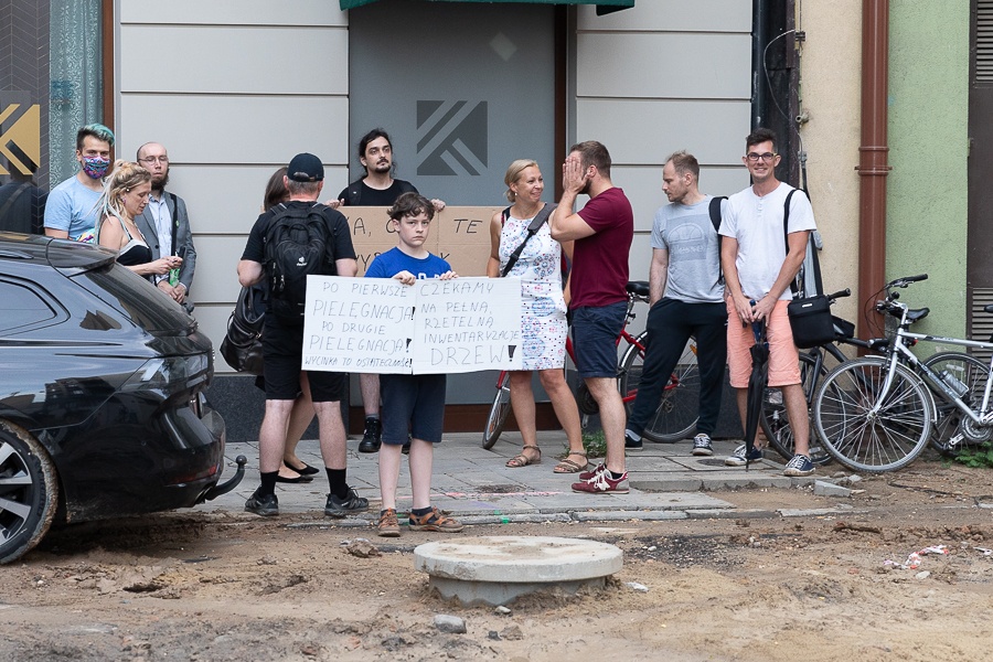 Protestujący zarzucali miastu, że wiele z nowo projektowanych miejsc w Łodzi to głównie beton z niską zielenią, bez tej wysokiej.