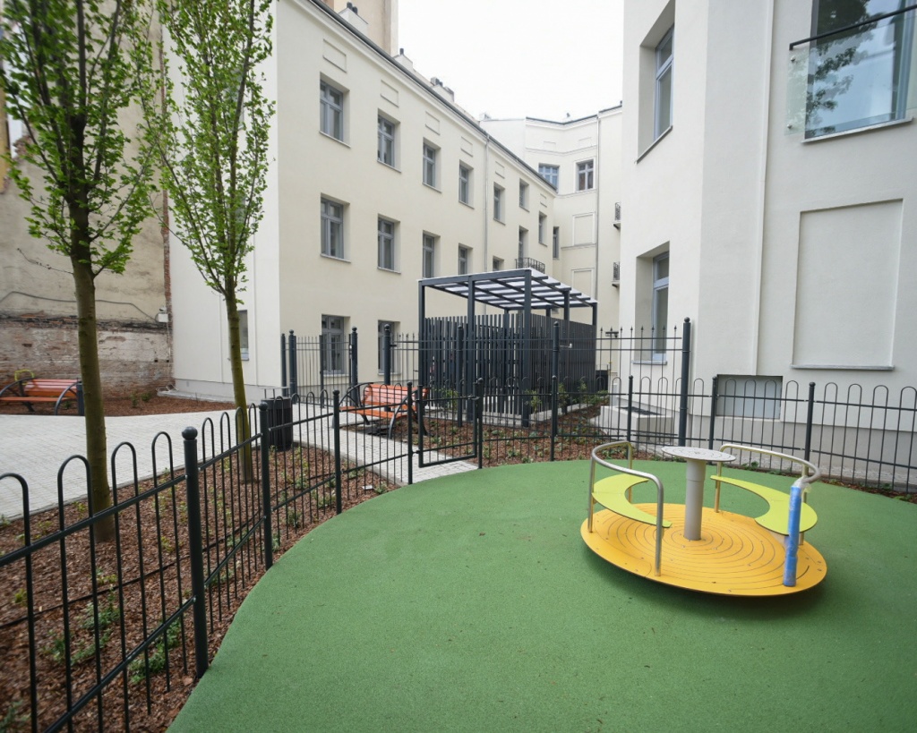Nowa zieleń pojawia się nie tylko na ulicach. Obok odnowionych kamienic powstają pełne zieleni przyjazne przestrzenie do spędzania wolnego czasu.
