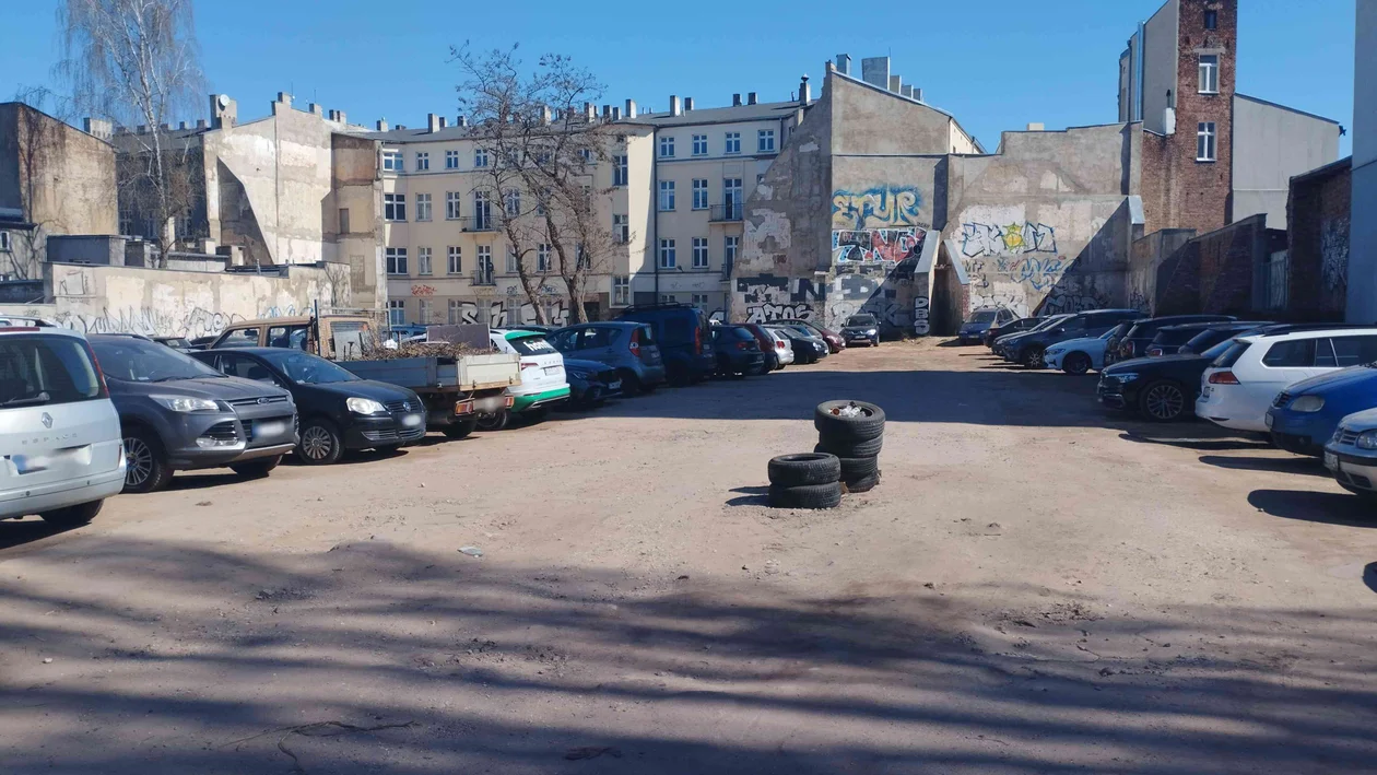 Choć na działce stoi zakaz wjazdu, pracownicy okolicznych biur zostawiają tu samochody.