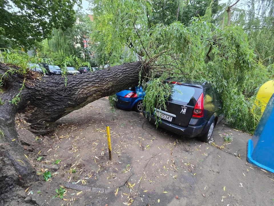 Czwartkowa burza wyrządziła wiele szkód. Na licznych profilach i grupach internetowych pojawiły się dziesiątki zdjęć samochodów przygnieciony przez powalone drzewa. Jedno z nich upadło w samym centrum miasta pod hotelem Ibis. Potężny konar przygniótł kilka samochodów. To cud, że nikt w tym zdarzeniu nie zginął.