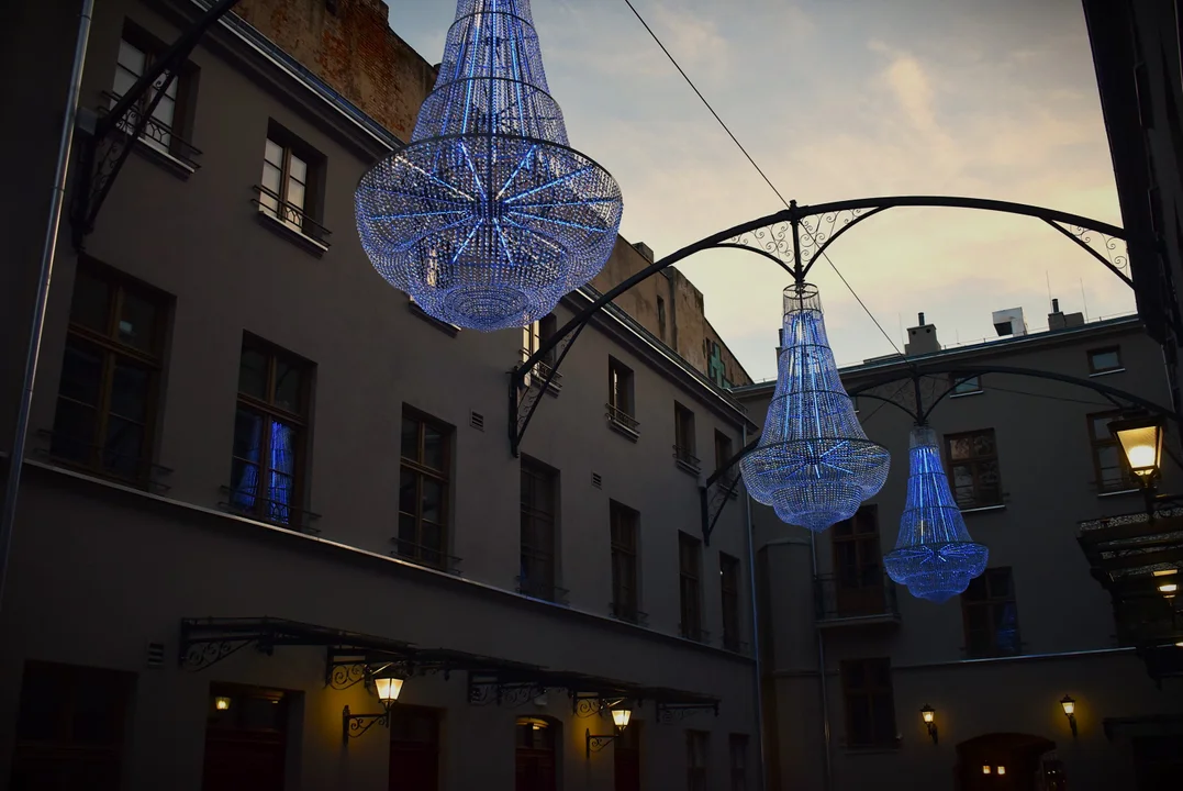 Gigantyczne żyrandole w podwórku na Piotrkowskiej