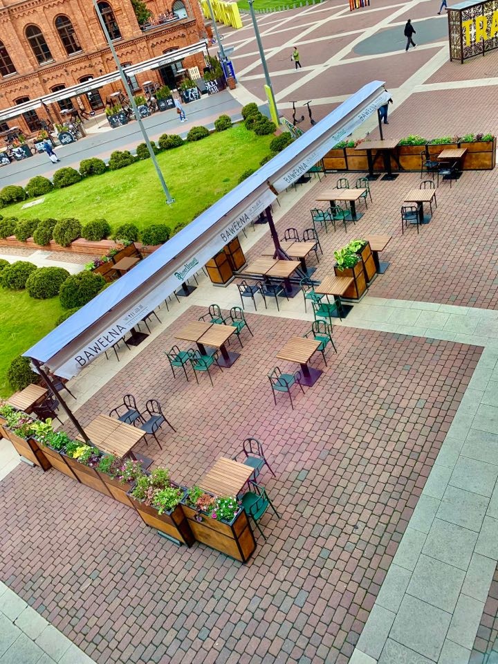 Analogiczne zasady sanitarne zostały wprowadzone w strefie gastronomicznej – foodcourt. Tu również usunięta zostanie część stolików i miejsc siedzących tak aby zachować wymagane dwumetrowe odległości pomiędzy nimi. Dystans dwóch metrów obowiązywać będzie również osoby stojące w kolejce do poszczególnych punktów gastronomicznych. Dla ułatwienia na podłodze wyklejono specjalne oznaczenia regulujące odległości pomiędzy oczekującymi. Przy wejściu do strefy gastronomicznej ustawione zostały dozowniki z płynem dezynfekującym oraz informacje z zaleceniami przestrzegania zasad sanitarnych m.in. z ważną dla klientów informacją że zasłanianie nosa i ust przez klientów nie obowiązuje w trakcie konsumpcji – czytamy w komunikacie prasowym Manufaktury.