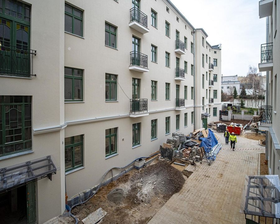 W tej chwili w kamienicy trwają prace wykończeniowe. Na podwórzu jest układana nowa nawierzchnia. Część jego przestrzeni zostanie przeznaczona na zieleń. Kończą się także prace konserwatorskie przy zabytkowej fasadzie. Prace zakończą się w grudniu.