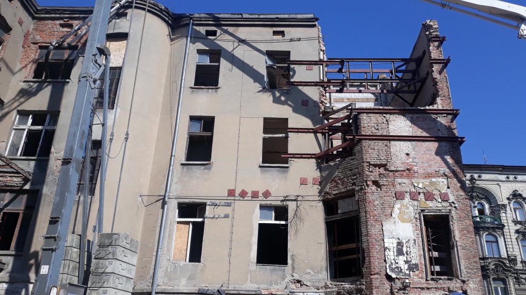 - Ściągi tymczasowe, czyli stalowe elementy, mają za zadanie ściągnąć budynek, przed wymianą konstrukcyjną stropu – wyjaśnia Michał Lenkiewicz.