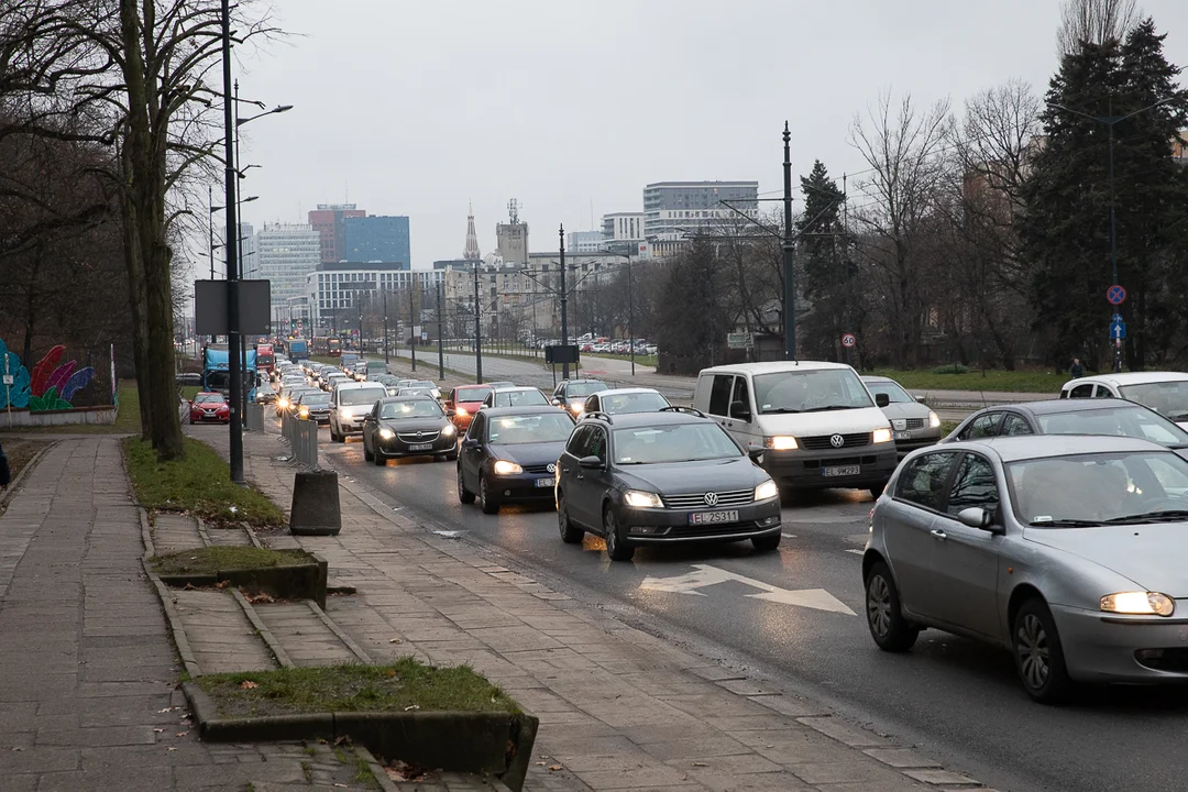 Największy ruch na skrzyżowaniu marszałków od strony al. Piłsudskiego w kierunku Widzewa. Ruch nie odbywa się płynnie już od wysokości ul. Wysokiej. Kierowcy stracą sporo czasu.
