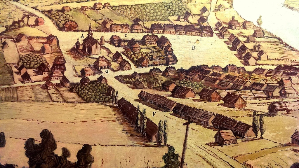 Wyszedł więc chłop z łodzi na brzeg, wyciągnął tobołek i trochę pomedytował. Później przez mieliznę wyciągnął ową łódkę ku wyższemu, północnemu brzegowi. Wdrapał się na wzgórek, rozejrzał wokoło i nabrał otuchy. Okolica była sposobna, na zdrową i spokojną wyglądała. Wnet chciał sporządzić sobie szałas na nocleg, by na drugi dzień łódź oporządzić i próbować płynąć dalej, lecz gdy chwilę pobył na brzegu, spotkała go tu pierwsza przygoda, zaczął padać ulewny deszcz. Nie zraziło go to wcale. Ściął kilka grubszych gałęzi i ustawił na nich swą łódź - dnem do góry! Posłużyła mu za schronienie przed burzą. Stała się pierwszym ludzkim dachem w tej okolicy...
