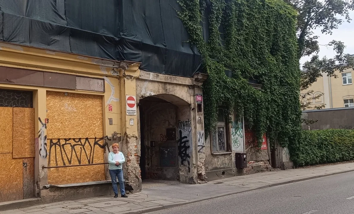 Wólczańska 146. Trudno uwierzyć, że w części kamienicy od strony ulicy ktoś w ogóle mieszka. Okna zabite dechami, budynek do połowy porasta winorośl. Strach wejść w bramę, bo z sufitu odpadają kawałki gruzu. W niektórych miejscach widać elementy konstrukcyjne. Jak to możliwe, że w mieście, w którym kamienice się sypią i co rusz dochodzi do katastrof budowlanych, ktoś wciąż żyje w takich warunkach?