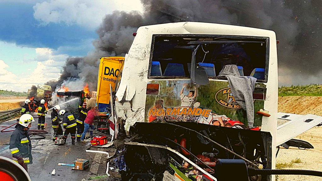 Do wypadku doszło przed godziną 14 w miejscowości Bogusławice, między Radomskiem a Częstochową. Zderzyły się autobus, auto ciężarowe i cysterna. Samochody stanęły w płomieniach. Autokar, który uczestniczył w wypadku wiózł obywateli Ukrainy.