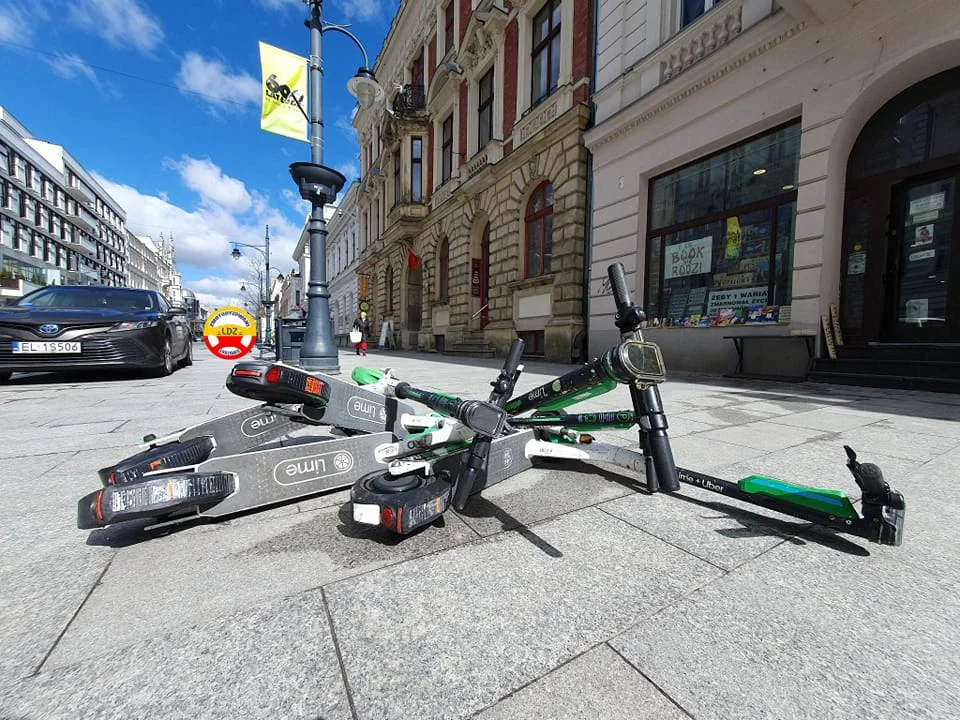 Nawet takie rozwiązania, wciąż powodują, że nie wszyscy potrafią pamiętać, że nie jesteśmy jedynymi użytkownikami drogi. Problem poprzewracanych, źle zaparkowanych hulajnóg jest aktualny także w Łodzi.