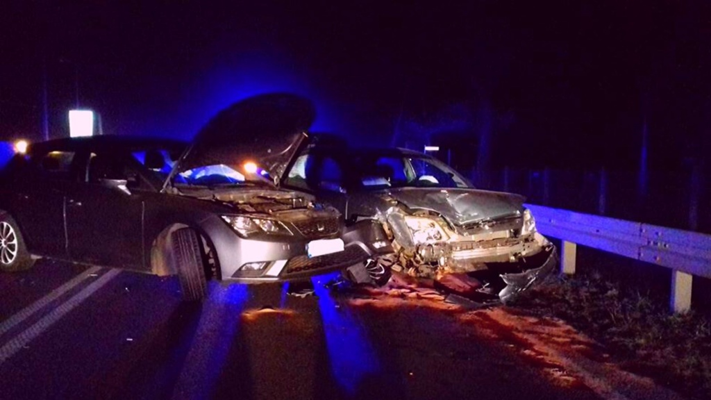 Zderzyły się dwa samochody: Seat Leon i Opel Vectra. Poszkodowany kierowca jednego z aut został zabrany do szpitala. Akcja ratownicza zakończyła się po godzinie 2 w nocy.