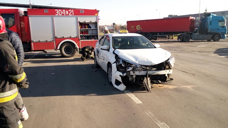 Z nieoficjalnego źródła wiadomo nam, że kierowca taksówki wymusił pierwszeństwo na pojeździe marki ford kuga. Na miejscu konieczna okazała się pomoc strażaków. W wyniku kolizji nie było osób rannych. W związku z trwającymi czynnościami policji, do czasu usunięcia pojazdów z jezdni, na tym odcinku drogi należy się spodziewać utrudnień w ruchu. Zalecamy objazdy i ostrożność za kółkiem.