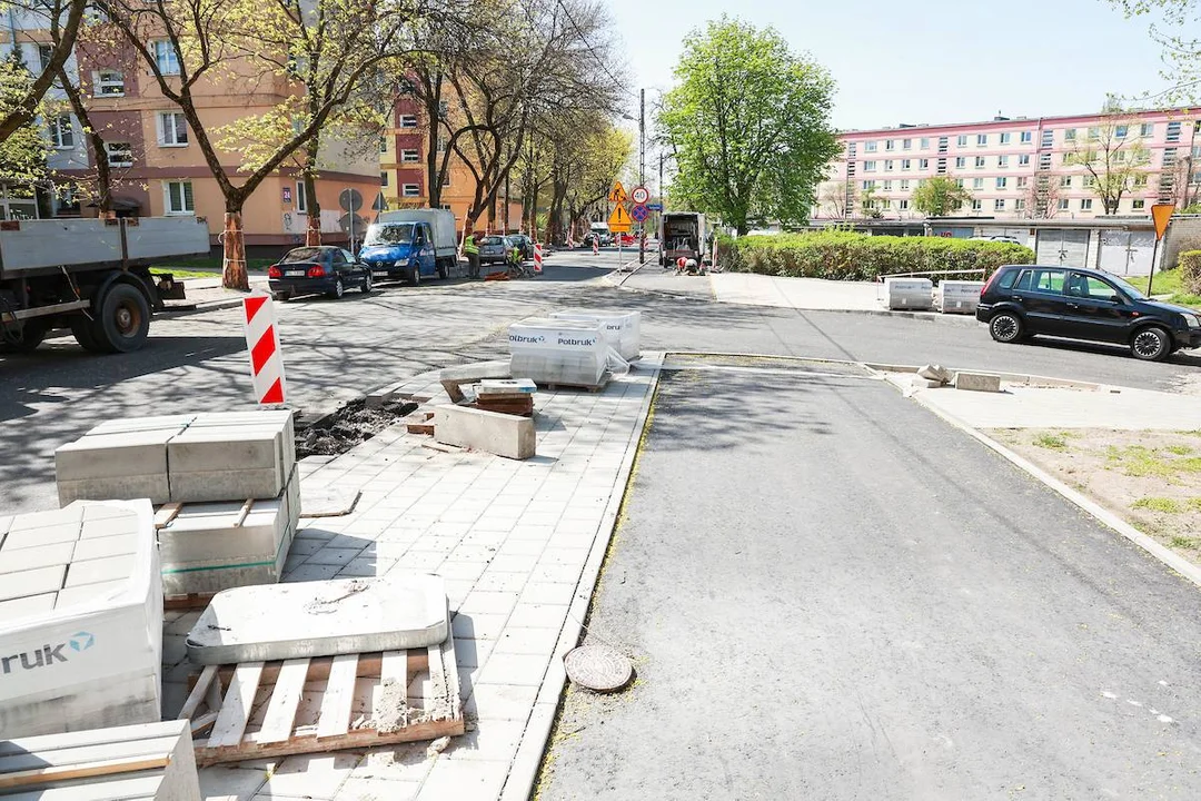 Dodatkowo uporządkowano miejsca postojowe – w miarę możliwości ich liczba została zwiększona. Prace brukarskie zostały zakończone. Obecnie trwają roboty wykończeniowe przy zjazdach prowadzących do posesji i ulic bocznych. Nie przewiduje się zmian w układzie drogowym – inwestycja ma charakter modernizacyjny, a nie przebudowy geometrii trasy.