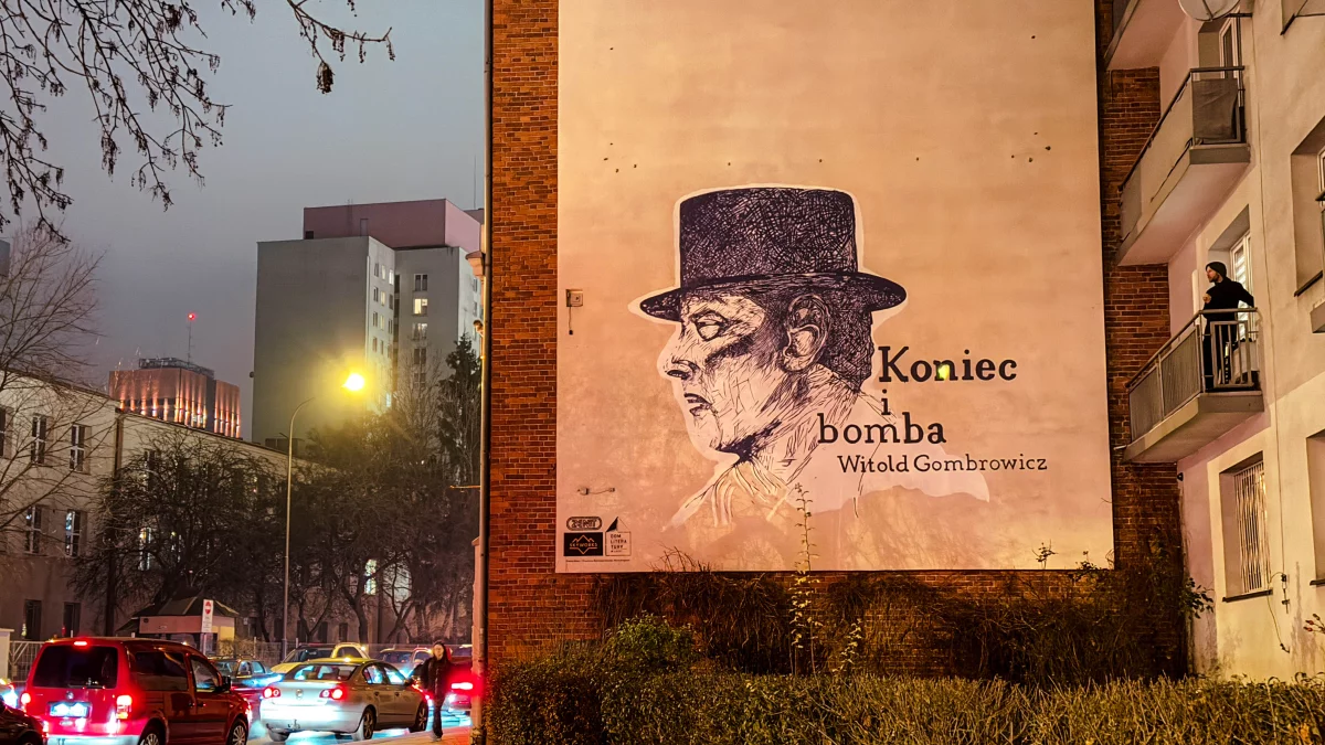 Portret Gombrowicza przypominać ma czasy szkolne, podczas których, szukając upustu kreatywności (i końca nudy!), rysowaliśmy na ostatnich stronach zeszytu. Słynne „Koniec i bomba” z Ferdydurke ma wywołać uśmiech i, przy okazji, naprowadzić odbiorców na właściwe tory skojarzeń.Autorką muralu jest Klaudia Kiercz-Długołęcka, absolwentka ASP w Warszawie, zatrudniona w Instytucie Sztuki Mediów im. prof. Ryszarda Winiarskiego i twórczyni z obszaru sztuk wizualnych; graficzka i ilustratorka.