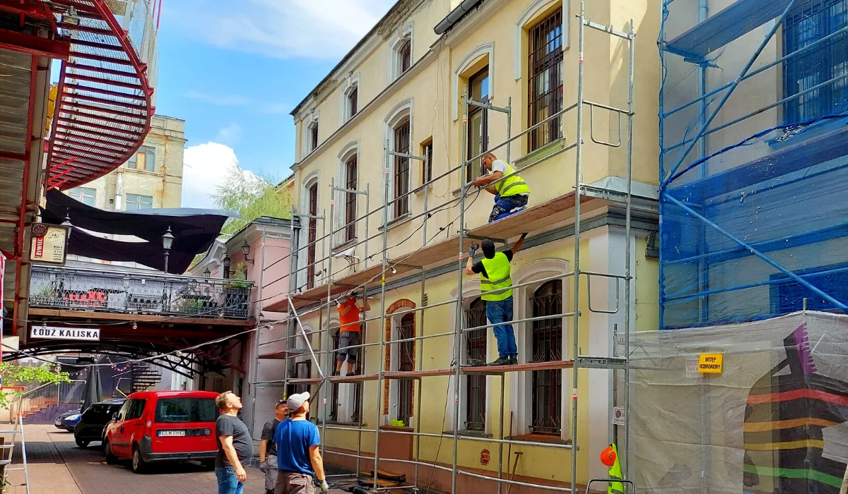 Prace remontowe na wewnętrznym dziedzińcu ul. Piotrkowskiej 102 obejmą zagospodarowanie podwórza oraz odnowienie elewacji od jego strony. Odtworzone będą detale, takie jak parapety i gzymsy.