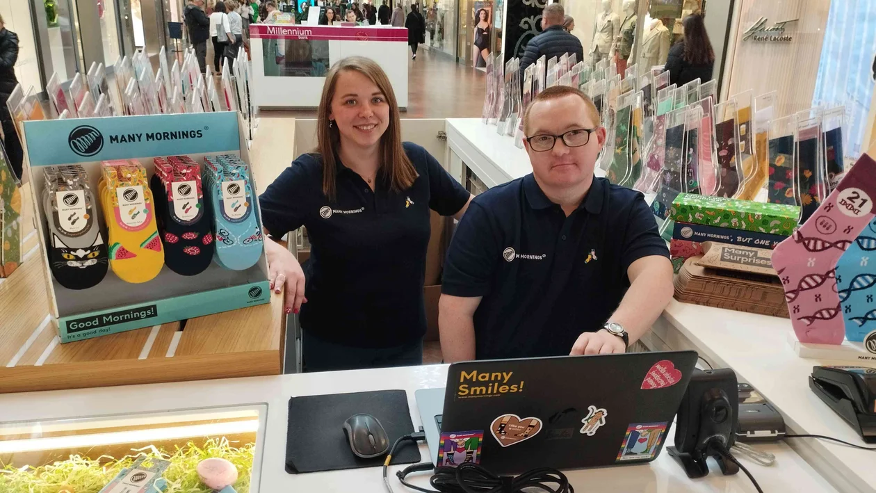 To druga edycja akcji firmy Many Mornings, która organizuje praktyki zawodowe dla osób z trisomią. Biorący w niej udział młodzi ludzie, nie tylko w Łodzi, ale również m.in. w Gdyni, Krakowie i Poznaniu, pracują przy sprzedaży skarpet. Żadna z nich nie jest podczas pracy sama, obok wsparcie oferuje inny pracownik. Dostają też wynagrodzenie. To, że chodzi o skarpety, nie jest przypadkiem: ta część odzieży symbolizuje solidarność z osobami z zepołem Downa.