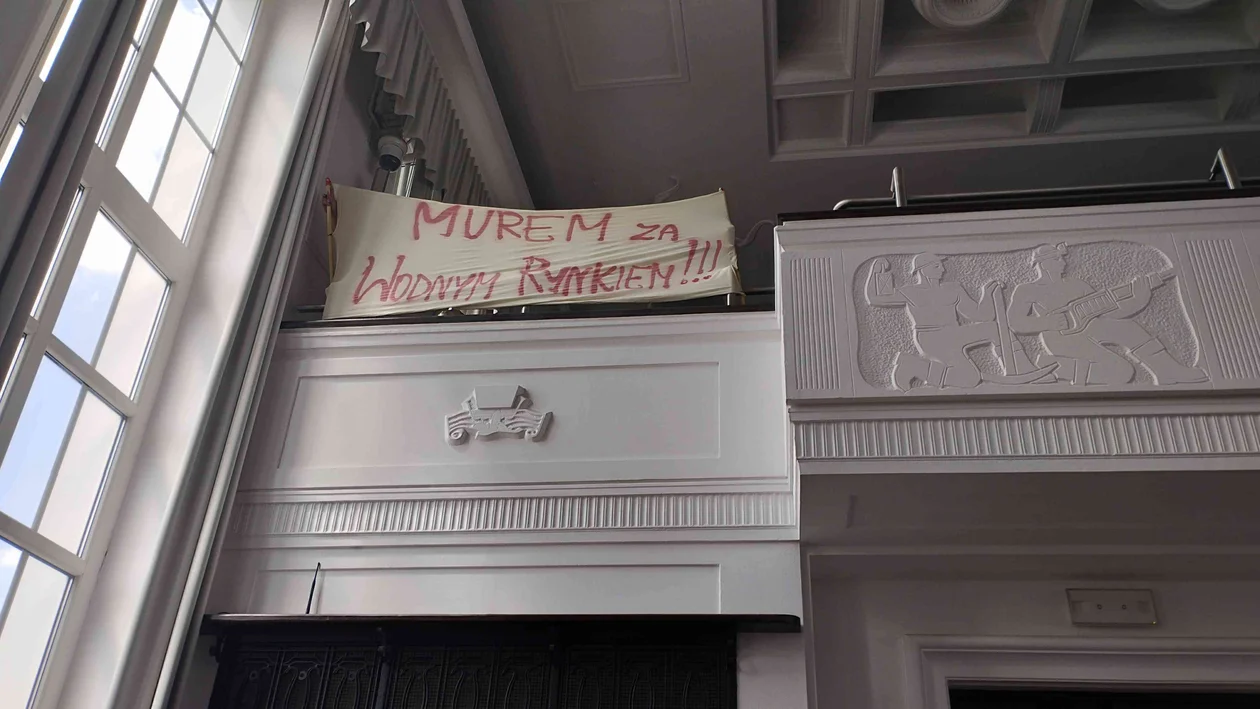 Handlujący wystraszyli się, że ich miejsca pracy zostaną zlikwidowane, a w miejscu rynku stanie apartamentowiec. Z transparentami przyszli na ostatnią (22 maja) sesję Rady Miejskiej, domagając się wyjaśnienia sytuacji. Na zamkniętym dla mediów spotkaniu dostali zapewnienie, że przynajmniej przez dwa kolejne lata będą mogli na Wodnym Rynku pracować, a jeśli jakieś stoiska trzeba będzie przenieść w inne miejsce, samorząd pokryje tego koszty. Żadnego poświadczającego to dokumentu do tej pory jednak nie otrzymali.