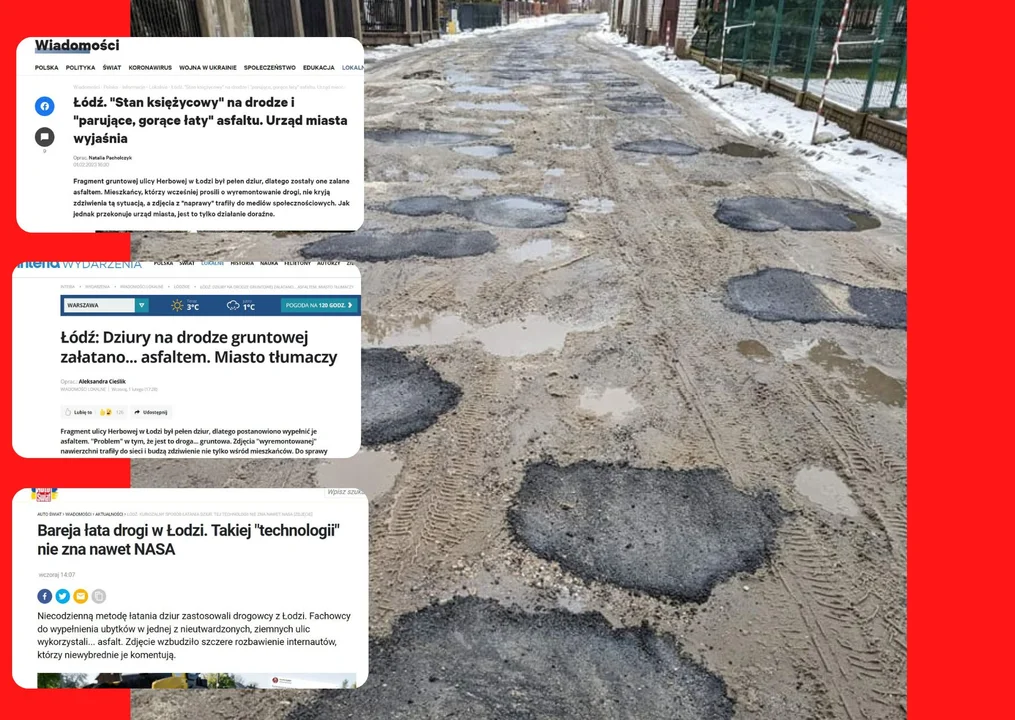 "Cudo łódzkich drogowców - "załatana" ulica Herbowa. Tzw. gównolit rzucony na drogę gruntową, zmieszany oczywiście z pośniegowym błotem. Brawo Zarząd Dróg i Transportu, brawo Hania. Tak się kończy tolerowanie fuszery i bylejakości od lat" - napisał na swoim fanpejdżu.